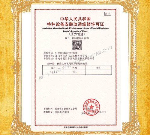 廈門隆興化工機(jī)械有限公司成立于2001年5月,占地面積30000平方米,擁有生產(chǎn)車間面積10000平方米及相關(guān)配套的辦公場所3000平方米,其中下料場所1000平方米,不銹鋼制作場所2000平方米,ASME產(chǎn)品制作區(qū)域1200平方米,無損曝光室30平方米。公司有職工135人,擁有專業(yè)的技術(shù)人員和管理人員36人。公司主要從事設(shè)計、制造A2級覆蓋D類壓力容器...